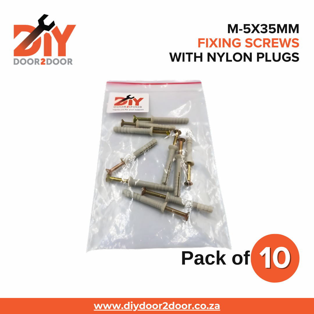 - 10x DIYDOOR2DOOR M-5x35mm Fixing Screws with Nylon Plugs.