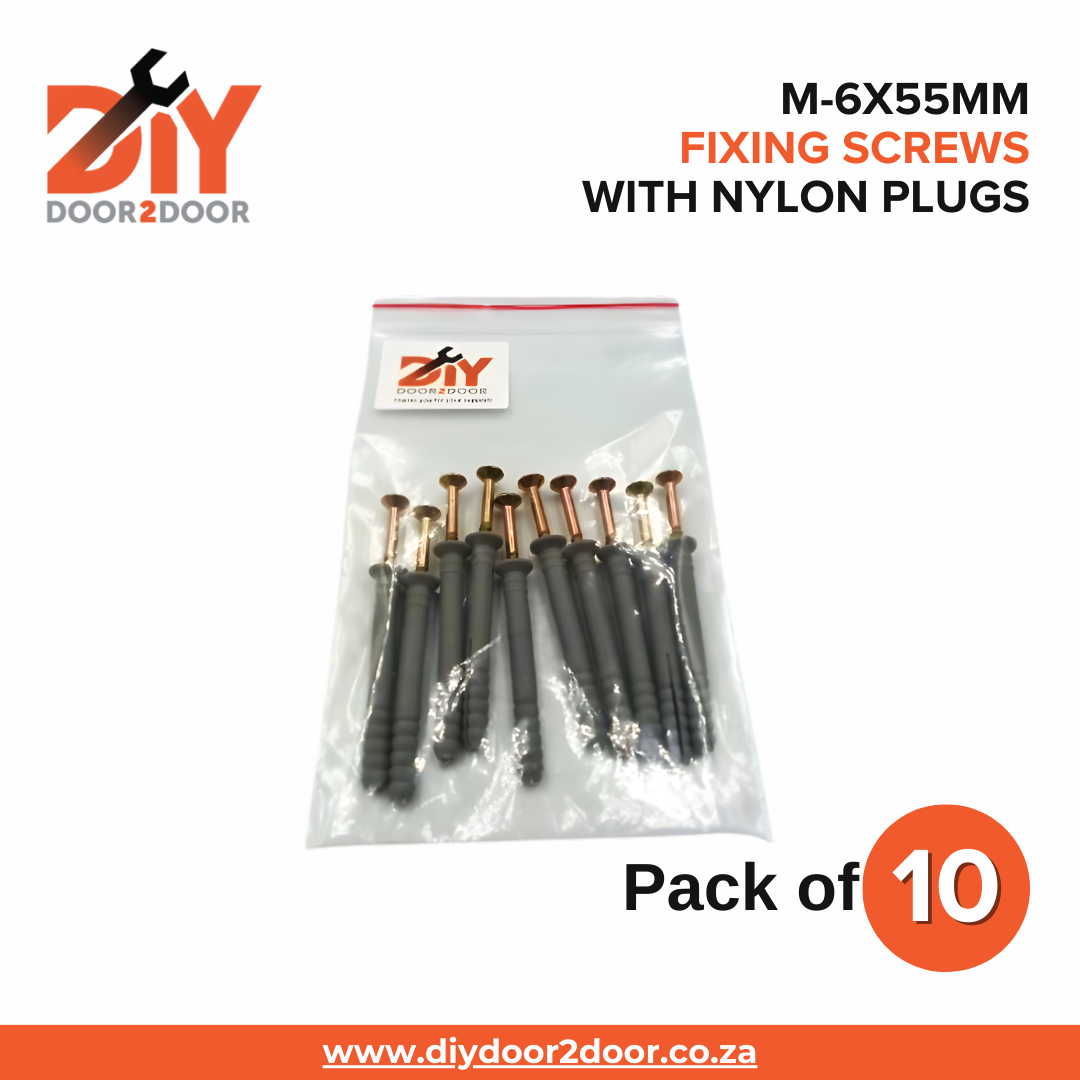 - 10x DIYDOOR2DOOR M-6x55mm Fixing Screws & Wall Nylon Plugs.