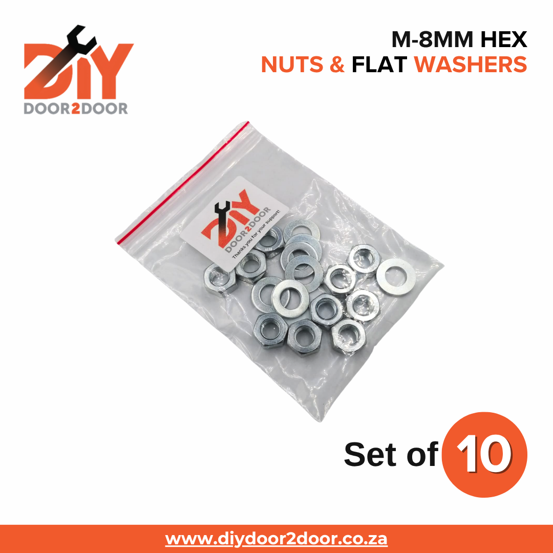 10PCS M-8MM HEX NUTS & FLAT WASHERS SET