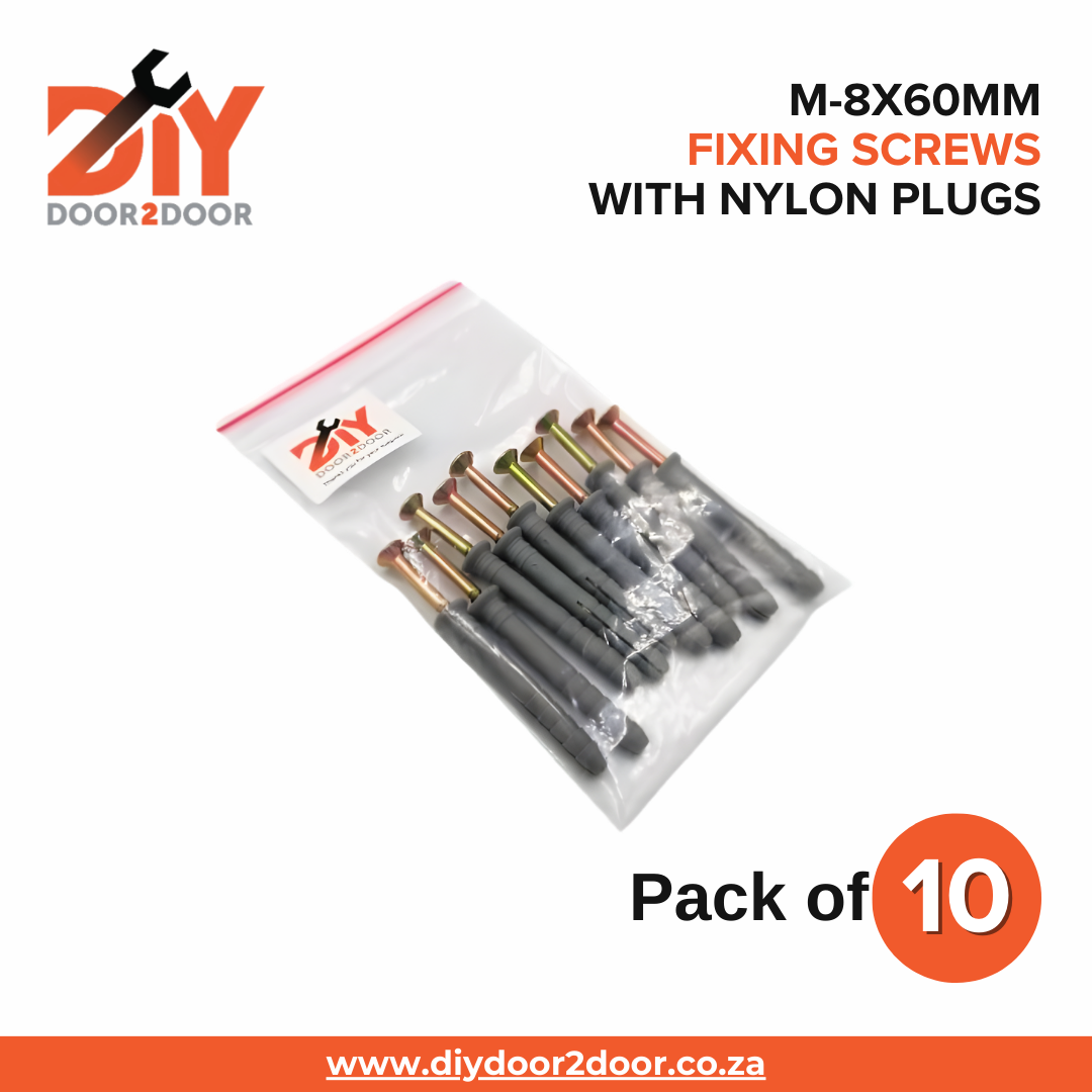 - 10x DIYDOOR2DOOR M-8x60mm Fixing Screws & Wall Nylon Plugs.