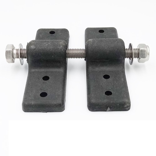 These 2PCS NYLON CANOPY SADDLES + HARDWARE - HEAVY DUTY are durable fittings used to secure vehicle or trailer canopies. They are typically paired with hardware such as bolts, clamps, and hinges to ensure a strong, safe attachment.