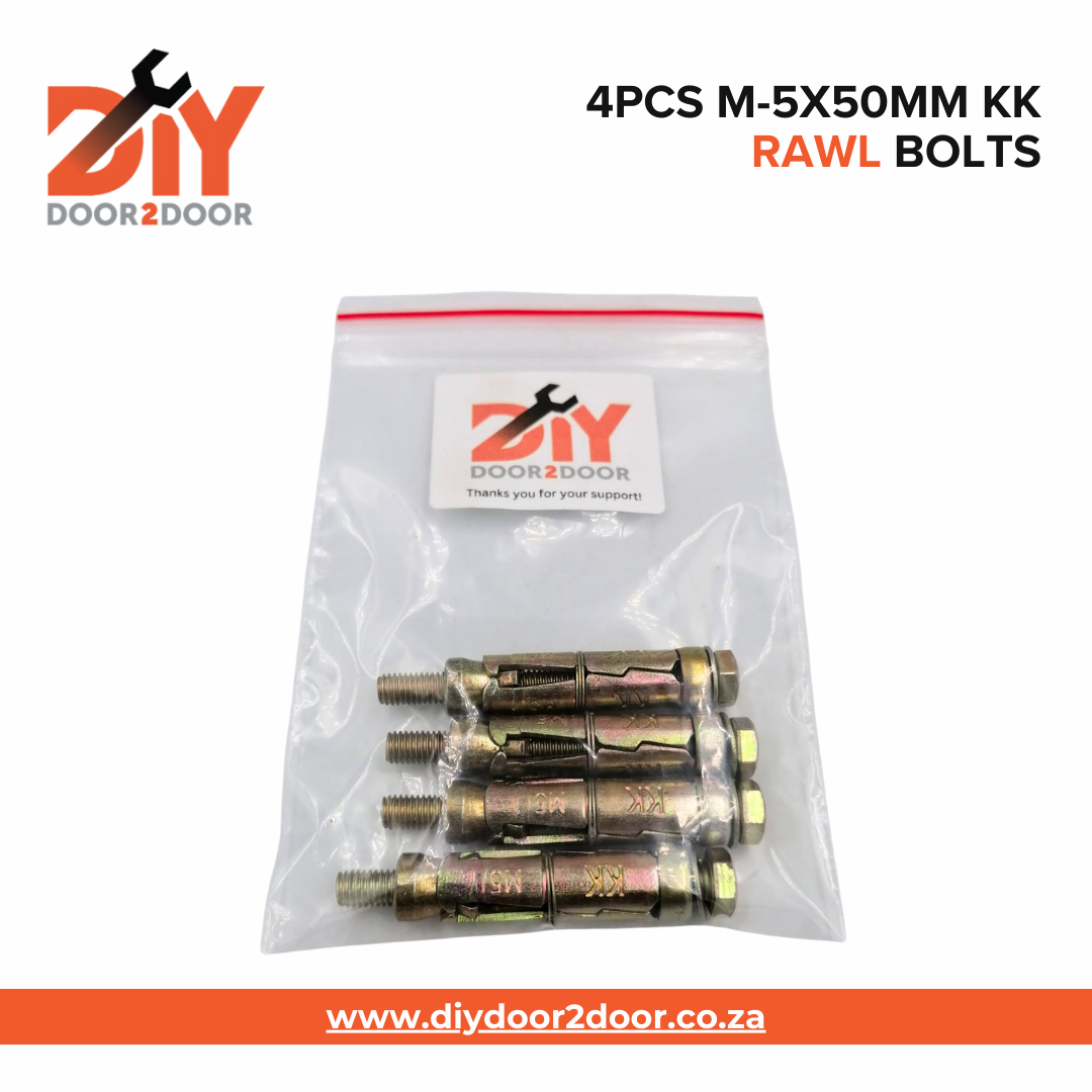 - 4x DIYDOOR2DOOR M-5x50mm KK Rawl Bolts.