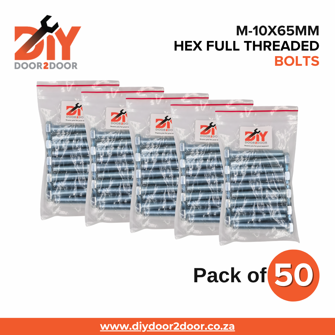 - 50x DIYDOOR2DOOR M-10x65mm Hex Full Threaded Bolts.