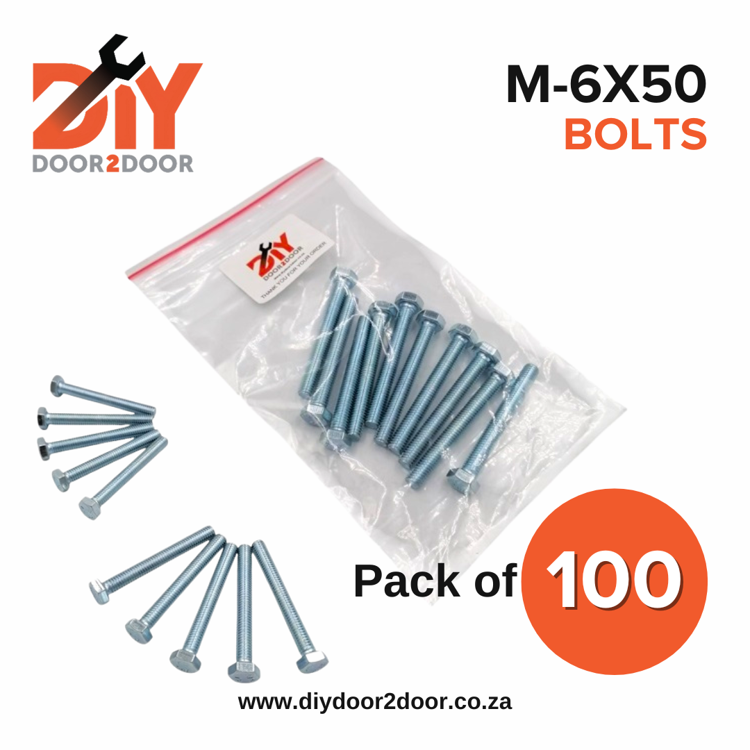 DIYDOOR2DOOR 100PCS M-6X50MM HEX FULL THREADED BOLTS