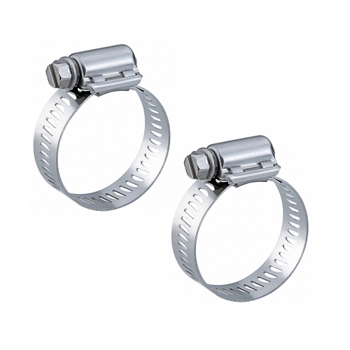 - Worm drive hose clamps with a circular band and worm gear mechanism.