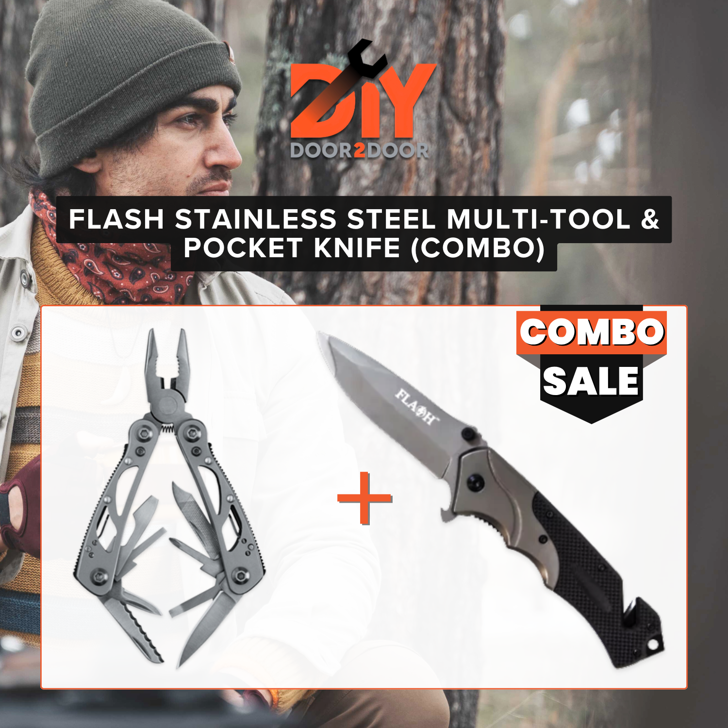 FLASH STAINLESS STEEL MULTI-TOOL & FOLDABLE POCKET KNIFE (COMBO)