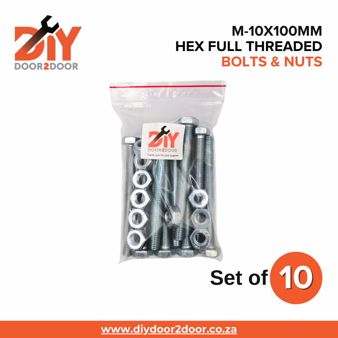 - 10x DIYDOOR2DOOR M-10x100mm Hex Full Threaded Bolts.