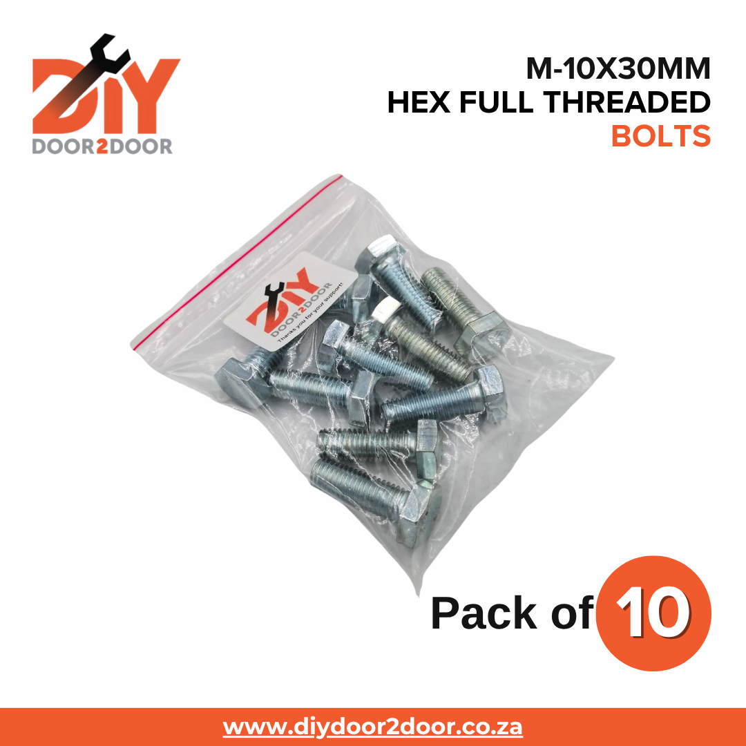 - 10x DIYDOOR2DOOR M-10x30mm Hex Full Threaded Bolts.