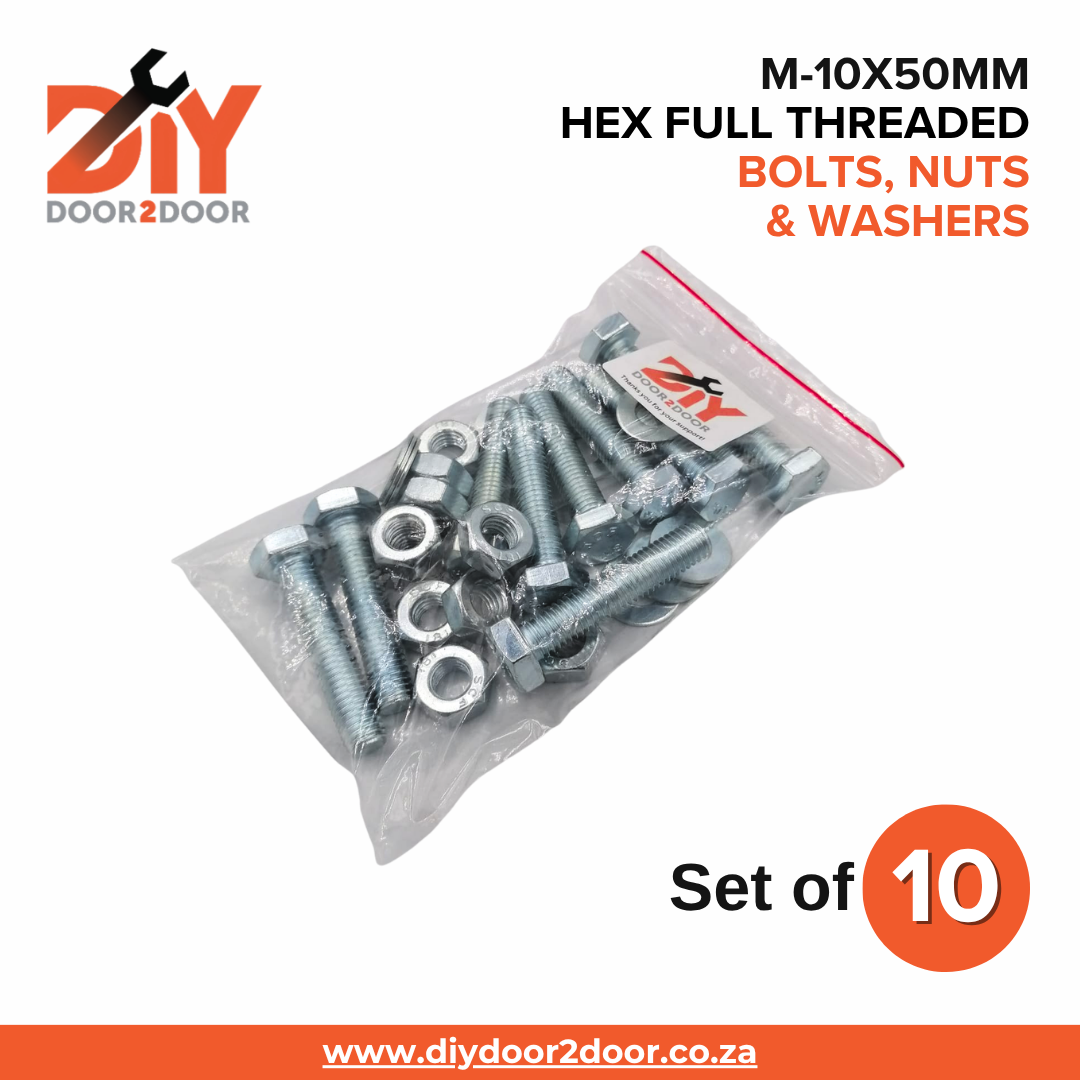 - 10x DIYDOOR2DOOR M-10x50mm Hex Full Threaded Bolts.