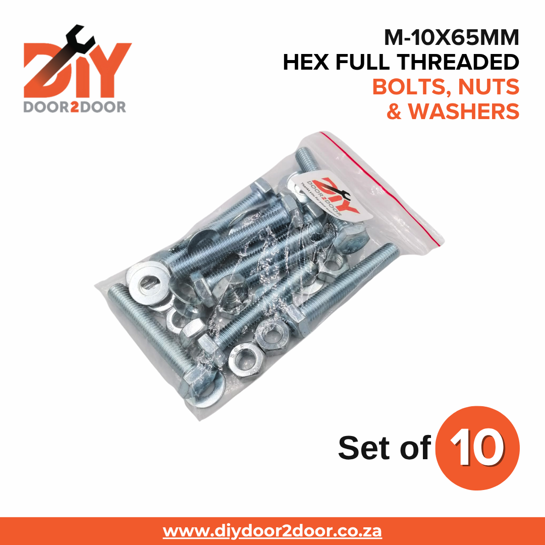 - 10x DIYDOOR2DOOR M-10x65mm Hex Full Threaded Bolts.