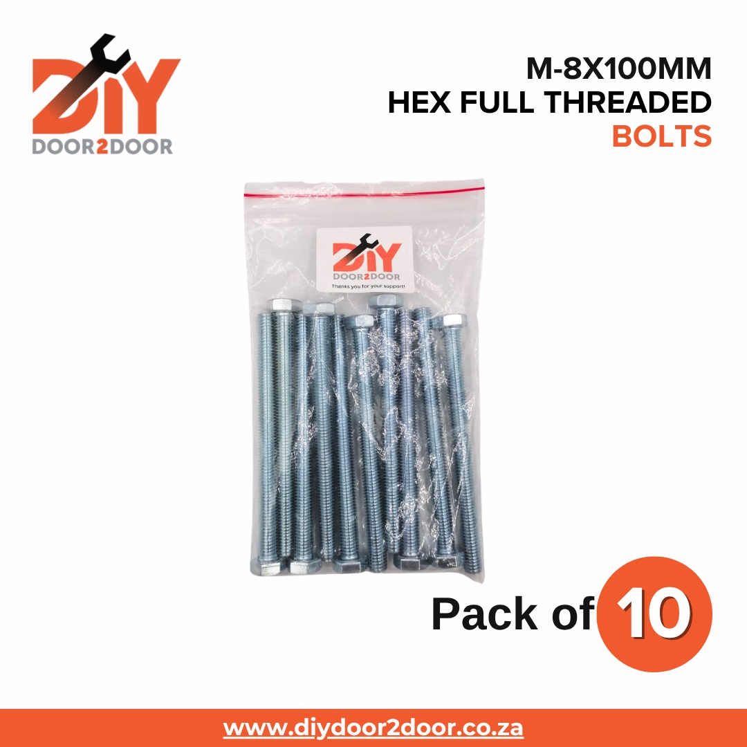 - 10x DIYDOOR2DOOR M-8x100mm Hex Full Threaded Bolts.