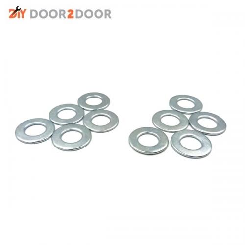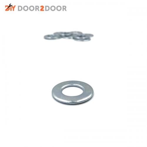 DIYDOOR2DOOR FLAT Washers are known as plain washers or flat discs, are thin, circular-shaped metal components with a central hole. They are commonly used in conjunction with bolts, screws, or nutator distribute the load of the fastener over a larger area, preventing damage to the surface being fastened and providing a more secure connection.
