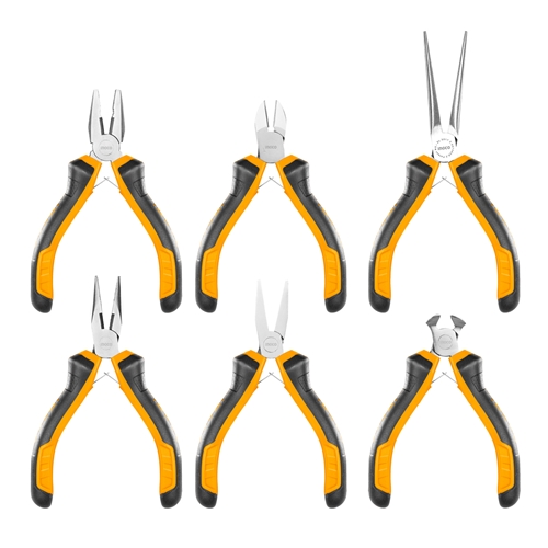 The INGCO 6pcs Pliers Set is a Mini Plier set designed for installation and repair of precision instruments or parts in narrow locations.
