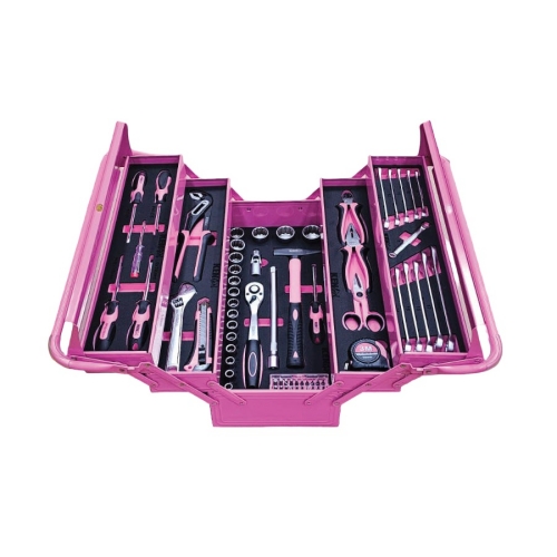 KENGIRL 77 PIECE 5-TRAY CANTILEVER METAL TOOL SET - BLACK & PINK