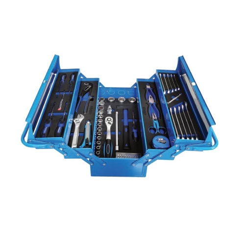 This KENGUY 77 PIECE 5-TRAY CANTILEVER METAL TOOL SET - BLACK & BLUE is an all-in-one workshop solution is designed for professionals and serious DIYers who need durability, organization, and versatility in their tool storage.