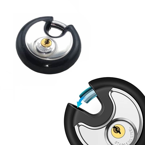 The OMEGA 70MM STAINLESS STEEL RUBBER COVER BLIST DISCUS LOCK (OMLDR) is a type of discus lock.