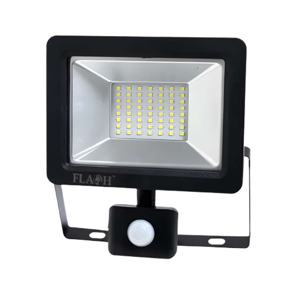The FLASH 30W SLIM LED FLOODLIGHT (WITH PIR MOTION SENSOR) - DAYLIGHT 6000K is a powerful and efficient outdoor lighting solution. Its PIR motion sensor ensures efficient energy use by activating only when motion is detected, making it both effective and economical.